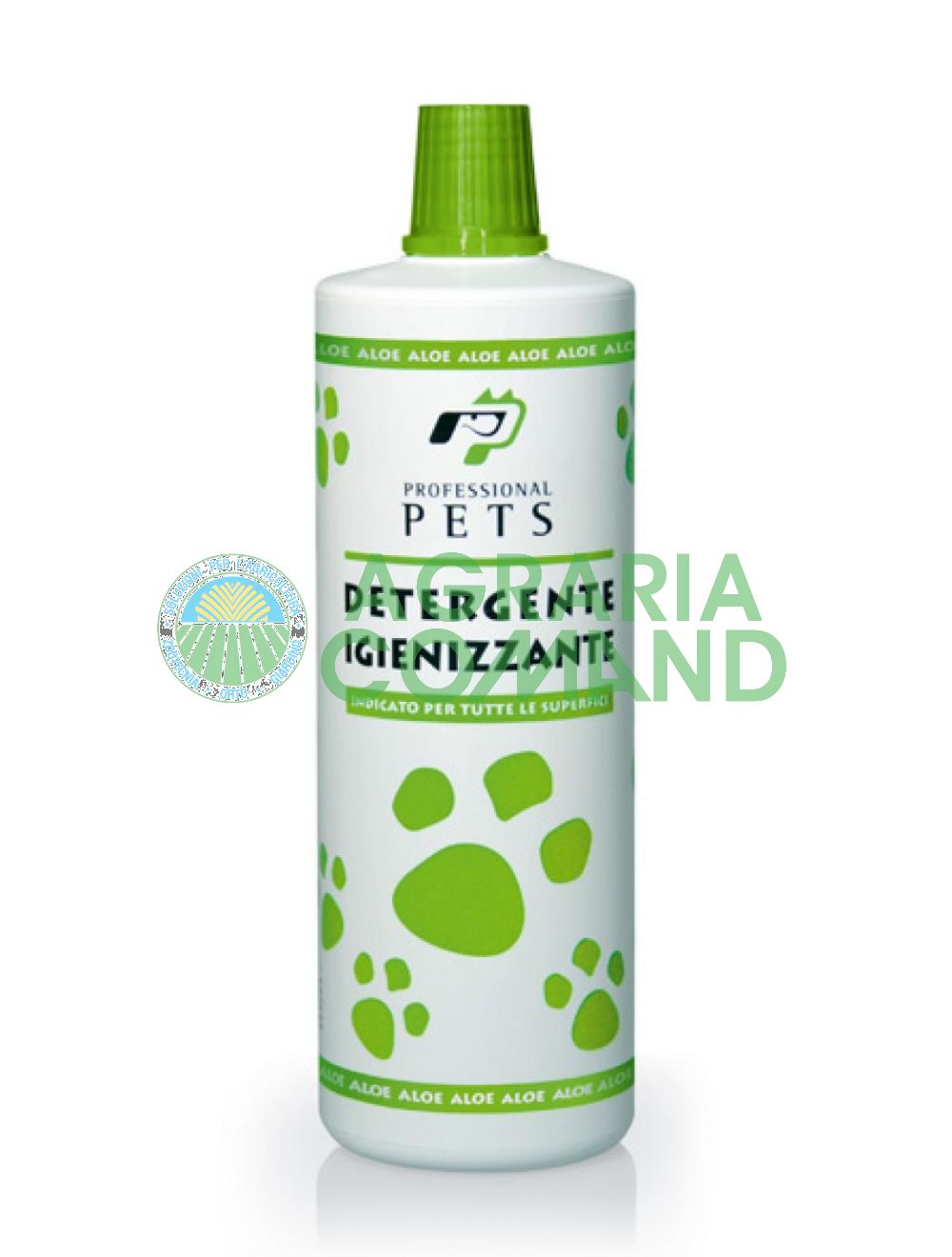 Detergente higienizante adecuado para la limpieza de todas las superficies en la versión de 1000 ml con aroma de aloe. El detergente Professional Pets es una formulación equilibrada de esencias naturales y sales de amonio cuaternario. Estos elementos hacen de nuestro detergente un concentrado con un alto contenido activo, adecuado para la limpieza en profundidad de entornos domésticos donde viven y permanecen animales.