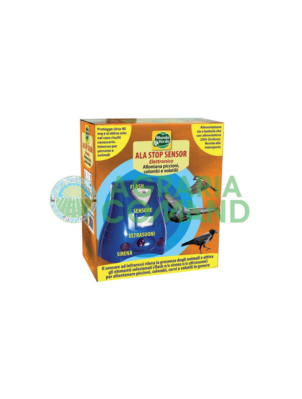 Doble alimentación: pila (no incluida) y fuente de alimentación (incluida en el paquete). Gracias al sensor de movimiento por infrarrojos, detecta la presencia de animales y activa los elementos disuasorios seleccionables en combinación: flash estroboscópico, ultrasonido modular y sirena. Estos sistemas disuasorios pueden utilizarse en varias combinaciones en función del tipo de animal que se desee ahuyentar.